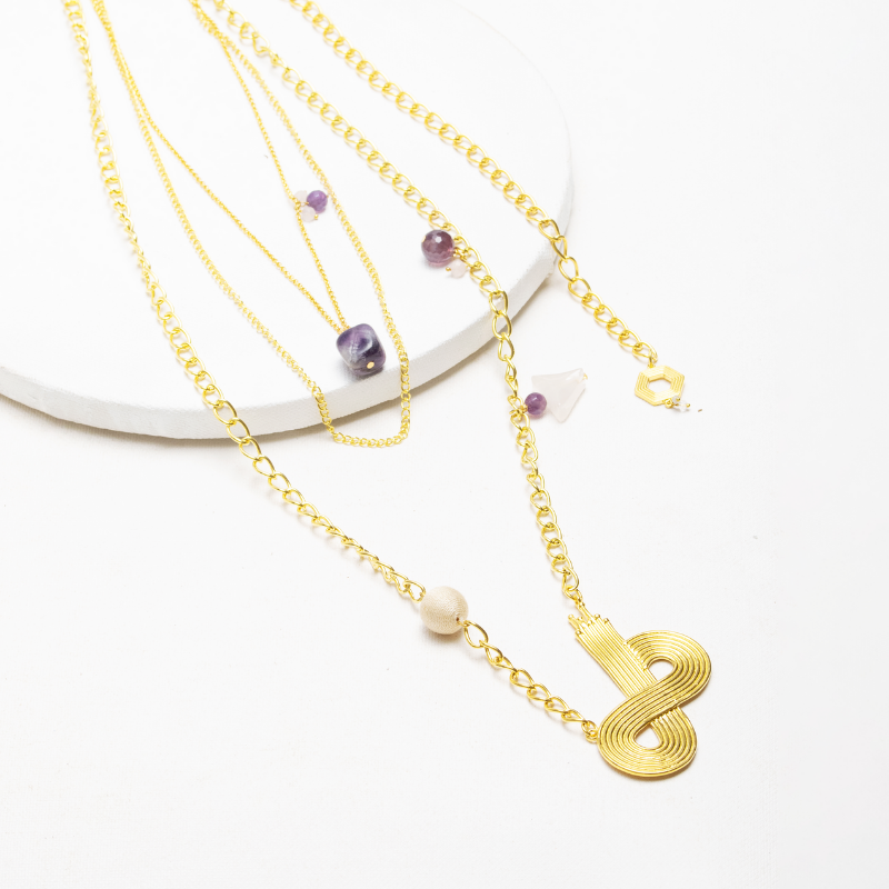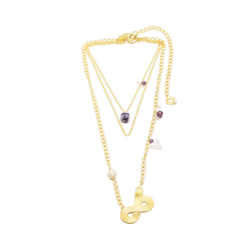 Friendship and tradition, sister necklace- in-memory of Heart expansion reuniting with your Heart tribe. Nuru brings visibility to a 4,000 year old metal casting Dhokra technique. Make Nuru your permission slip for the Holy to abide in you, with Amethyst inspiring the dream realm, and enhancing your electric psychic abilities, and Rose Quartz deepening our hearts song throughout the land.