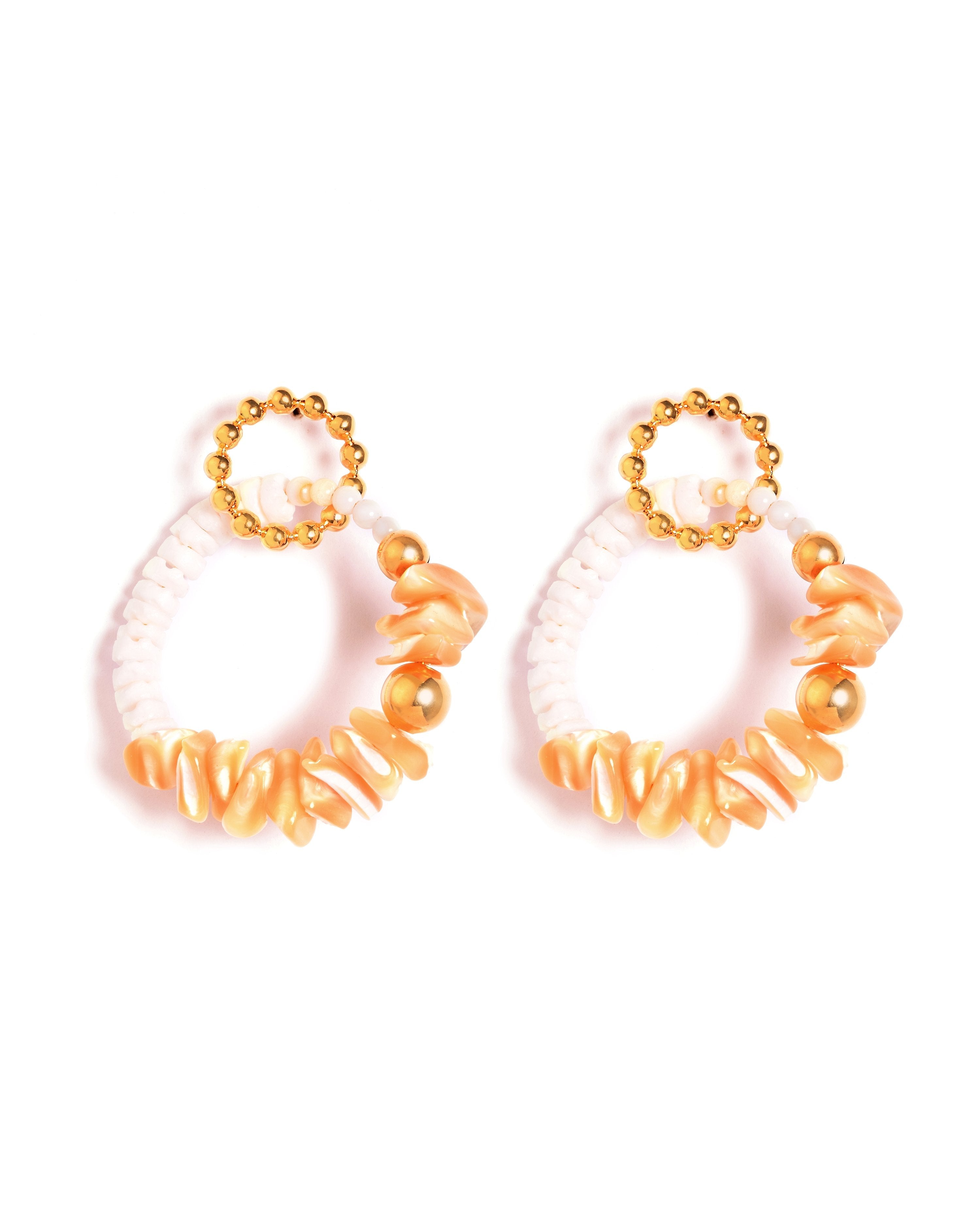In a subtle combination of colors, silver beaded circles that slip into a circle of white jasper, a drop of silver and then mother of pearl, all together in a hoop that dangles as you dance, these pearls are ready for anything you are ready to embark upon.