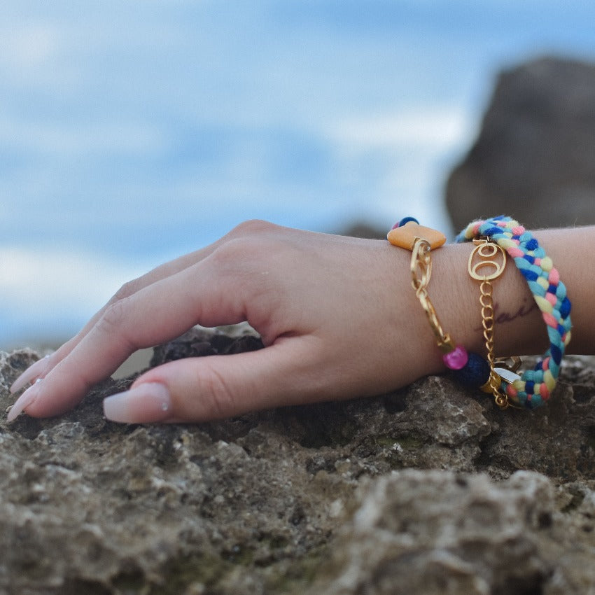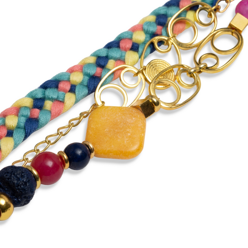 Muse of creation fire, while you hold your breath for the big reveal, remember, you are the poetry being written. Infinite crystal star in alignment, Divine Messenger Aventurine's practical enthusiasm partners up with Agate who instils security and safety. Tiger's Eye fortifies protectct while Shevran Jasper supports your ability to maintain your Self-balance with Amazonite. Quartz and Gold Stone then join forces to build and amplify this Divine Co-creation.