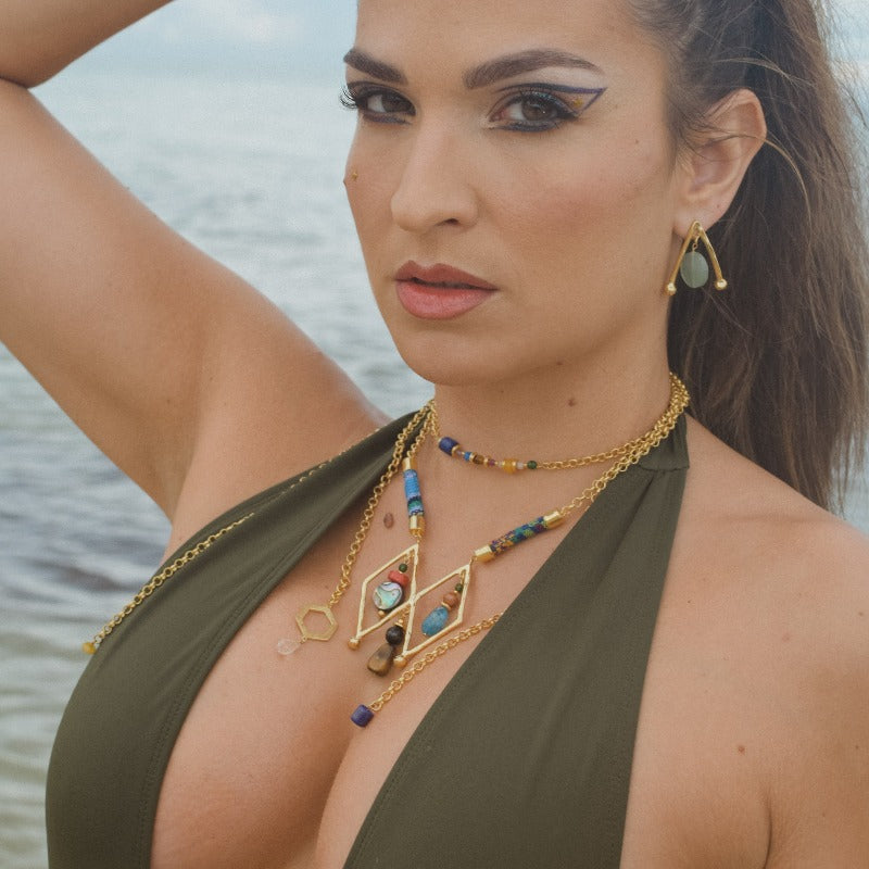 You are created in simplicity yet bold in stating your soul desires. Stand in your power and shine in your elegance for you are more than worthy! The Green Aventurine brings support to your heart's healing abilities. Supporting in the call upon your ancestral wisdom. This masterpiece brings prophetic visions and messages. The time is now! It is time to bring heaven unto Earth with your grace.