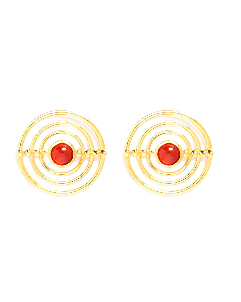 Red Sunrise Golden Stud Earrings
