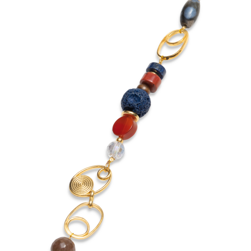 Lava bead appears to strengthen your connection to Mother Earth. Melachite encourages you to speak the truth of your heart as it aligns your throat to your heart. Carnelian comes to enhance your creativity;and with effortless grace, you are all that exists.