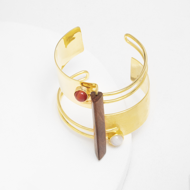 A constellation in her self orbits and stargates YOU are her North Star, moulded into perfection for your silky mocha skin. Hues of Sunset Carnelian and Moon light Moonstone, together allow you to be grounded yet cosmic, an effortless bridge between worlds.
