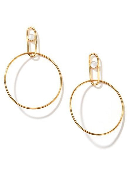 The white mother of pearl gemstone sits in an ellipse link, adding a softness to these delicate earrings. A classy must have for any collection. .