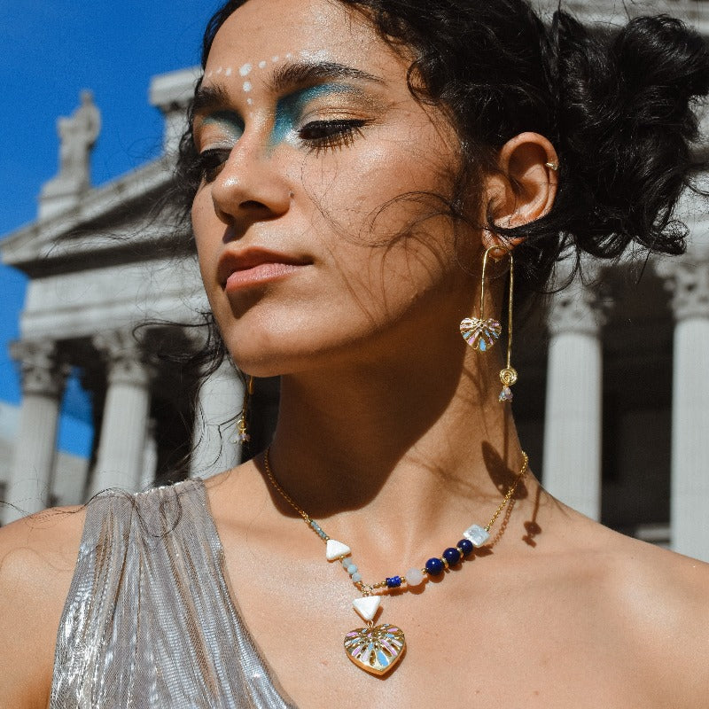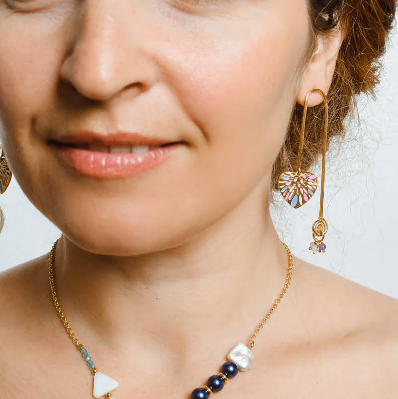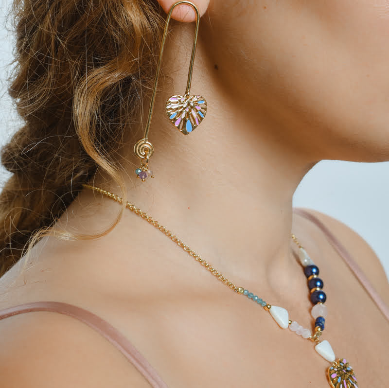 Loves with an open heart, suspended in space she allows life to guide her. With each experience, she blooms into a succulent masterpiece. Amethyst offers effortless trust. The Safety of Dalmation Agate compliments your affirmations and the calming ways of Prehnite bring you into Divine harmony.
