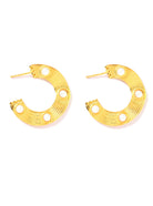 Why use gold as your only light? Add a new option—these open-ear golden earrings are etched with moon stones, just to brighten things up a little, day or night.