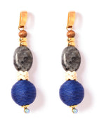 From the golden studs to the bold blue lapis lazuli and dark blue globe of hand-woven beads that end with just a touch of gold, these dangle earrings charm everyone and happiness is shown from earring to earring.