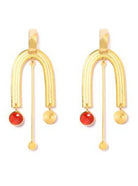 Gold, Red Onyx and Onyx Hot Springs Dangle Earrings It's time to escape into the golden hot springs at the end of one side of the waterfall or the hot Red Onyx red at the other end. Or you can take your chances with the black onyx at the bottom--it's totally your choice. Plated with 18 kt gold.
