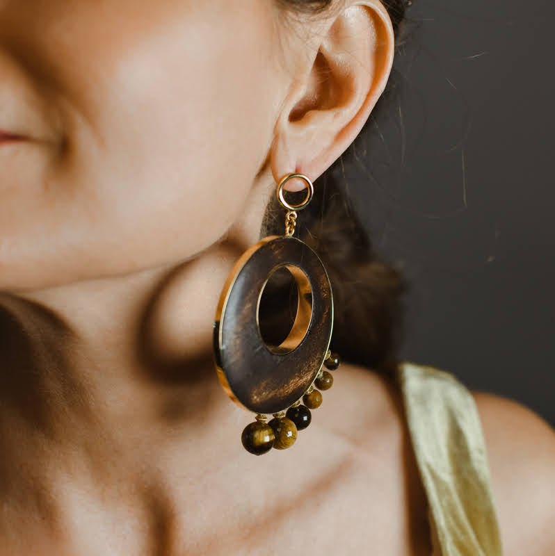 This piece is supported by the TRI - the Tiger Eye, Black Onyx and Jasper