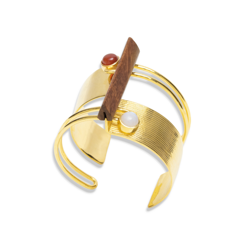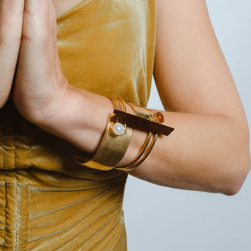 A constellation in her self orbits and stargates YOU are her North Star, moulded into perfection for your silky mocha skin. Hues of Sunset Carnelian and Moon light Moonstone, together allow you to be grounded yet cosmic, an effortless bridge between worlds.