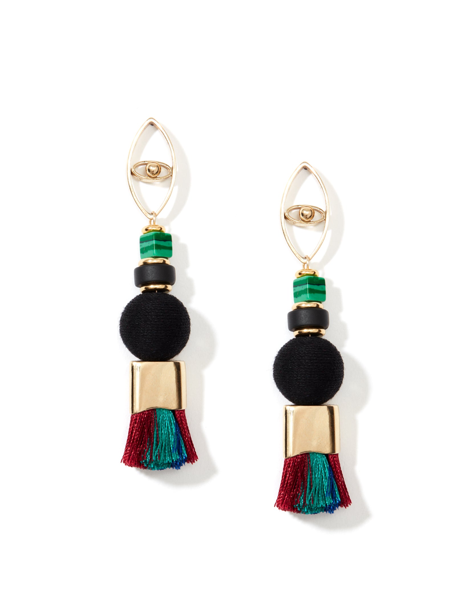 The oval eyes of gems give you a better view, while the mottled green Malachite gemstone, crochet bead and green and red silk tassel grab the eye of any prey. With the menagerie of colors, these earrings compliment every outfit. Hypoallergenic earring posts and backs. Comfortable big size earring Push-backs. Our Jewelry is Nickel Free.