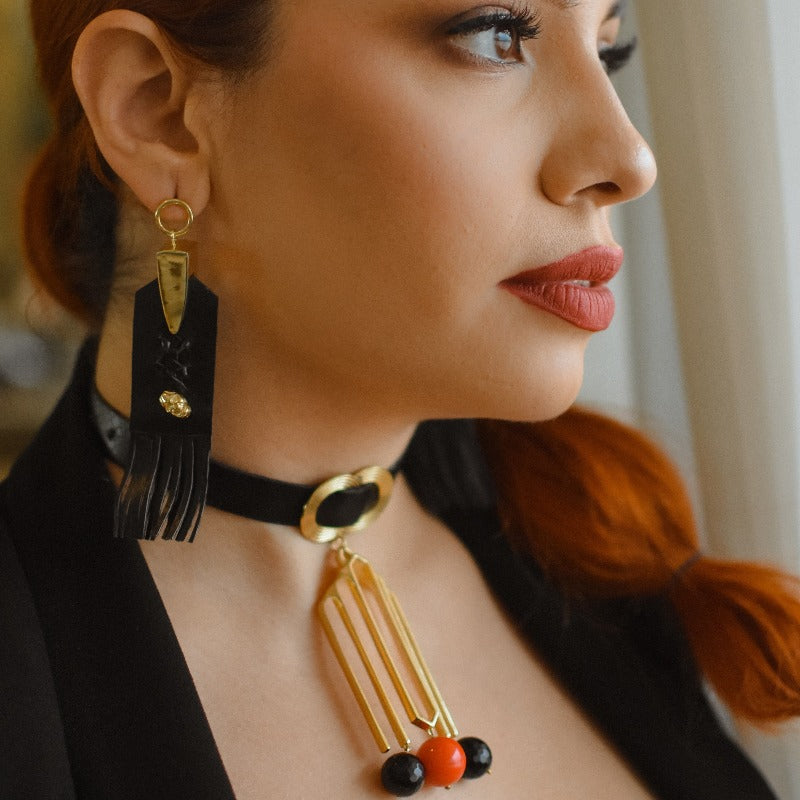 You were created from high heat Provocative Prose Composed to impact Mysterious and seductive power Crafted with vegan leather, the duet of Black Onyx and Coral brings a calming song for grief that has long past. A spark to light rejoicing the new.