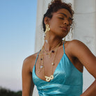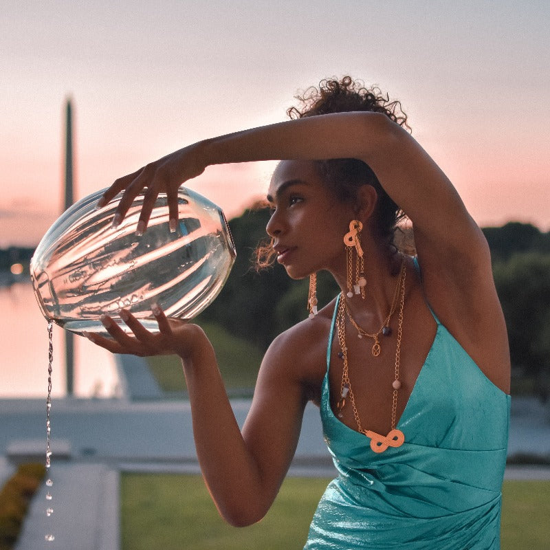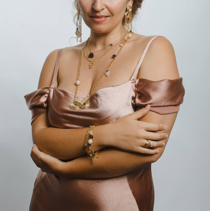 Friendship and tradition, sister necklace- in-memory of Heart expansion reuniting with your Heart tribe. Nuru brings visibility to a 4,000 year old metal casting Dhokra technique. Make Nuru your permission slip for the Holy to abide in you, with Amethyst inspiring the dream realm, and enhancing your electric psychic abilities, and Rose Quartz deepening our hearts song throughout the land.
