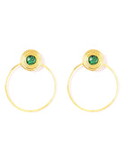 Green Malachite surrounded by ceaseless golden spirals bring spring to mind, and the dangling hoops open one up to a new season.